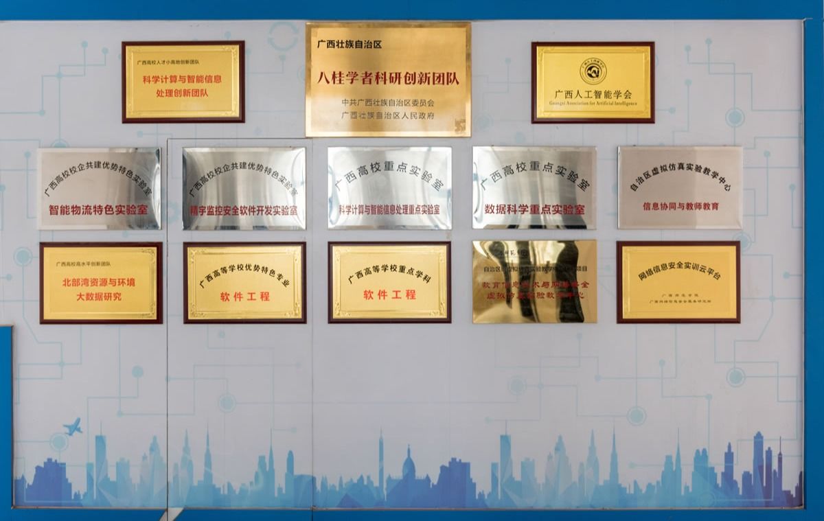 日积月累的科研成果。学院在数据挖掘与决策支持系统、智能控制系统与应用、电子商务与物流系统开发与应用、云计算与分布式系统等主流研究领域开展研究。多年来,教师主持国家自然科学基金项目13项,参与10余项;主持973前期子项目1项;主持863子项目5项;主持国家科技支撑计划子项目1项;主持省级重点项目2项;主持自治区千亿元产业科技攻关项目1项;主持省部级科研项目10余项;取得省科技进步奖6项,南宁市科技进步奖3项,及南宁市计算机及电子信息技术推广应用优秀成果二等奖1项;经广西科技厅鉴定项目10项,其中1项为“国际领先水平”,6项为“国际先进水平”,3项“国内领先水平”,1项“国内先进水平”;省级优秀教学成果奖10多项,各类教学成果20多项;获国家、部、省、厅级以上各种教学科研奖励30多项;发表论文400多篇,其中SCI、EI、ISTP和核心期刊共300多篇,出版专著9部,译著1部,编写出版教材9本;研发行业软件系统30多个,获软件著作权50多项,申请发明专利20多项,新技术推广应用多项。